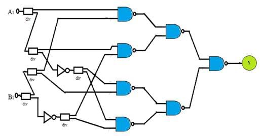 Assignment #6: Refer Assignment #5. If all NAND gates are replaced by NOR gates, what is the output Y? a. Logic 0 b. Logic 1 c. Y = A1.B1 d. Y = A1 + B1