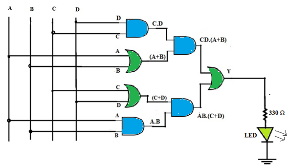 If the majority circuit is defined as a logic circuit that generates a HIGH output when the majority of its inputs A, B, C and D are LOW, then which of the following Boolean expression defines this circuit?